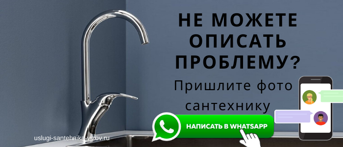 Иногда клиенту сложно описать проблему поломки или заказчик затрудняется с выбором покупки нового сантехнического оборудования. В этом случае вы можете нам прислать, в любой удобный для вас мессенджер: Вотсап, Вайбер, Телеграм, фотографию поломки, протечки или фото старой сантехники которую вы решили заменить. Наши мастера сориентируют вас по стоимости работ, порекомендуют на что нужно обратить внимание перед покупкой сантехники.